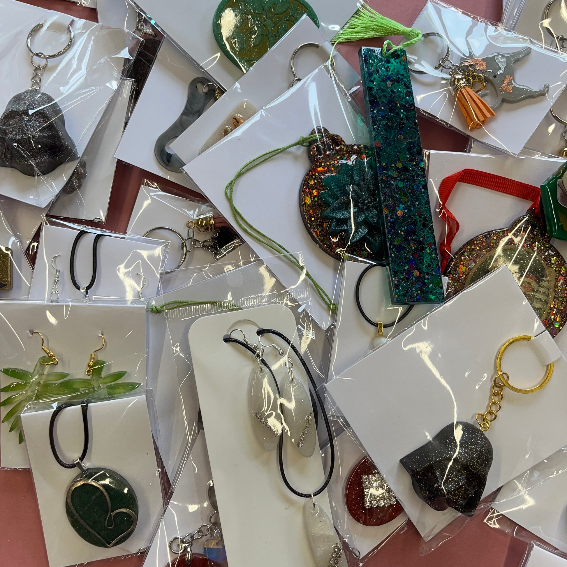 RESIN LUCKY DIP - 10 pcs Jewellery Keyrings And other items