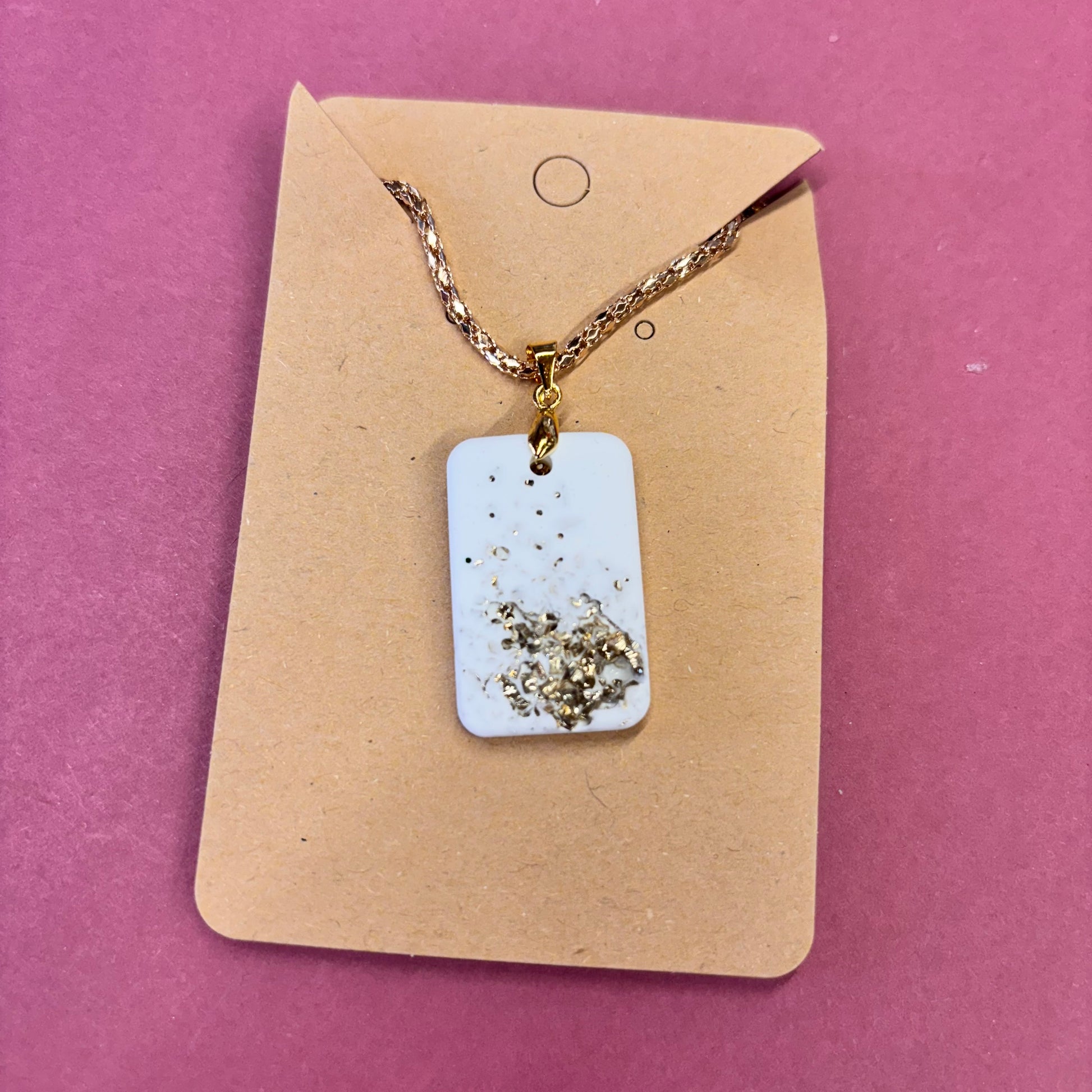 Small Rectangle Gold Stones Eco Resin Pendant